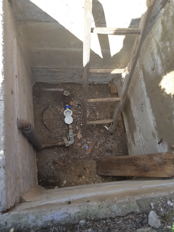 Strom, zentrale Wasserleitung, Schacht für Abwasserleitung |